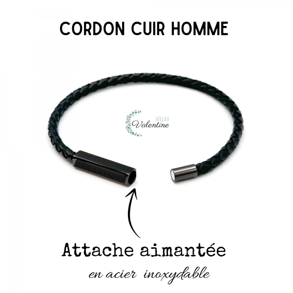 PAPA ♡ - Bracelet cordon cuir tressé noir